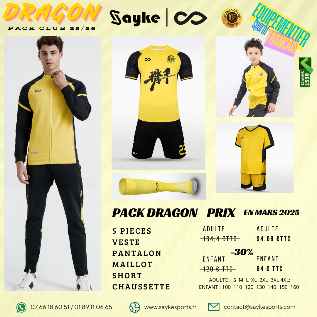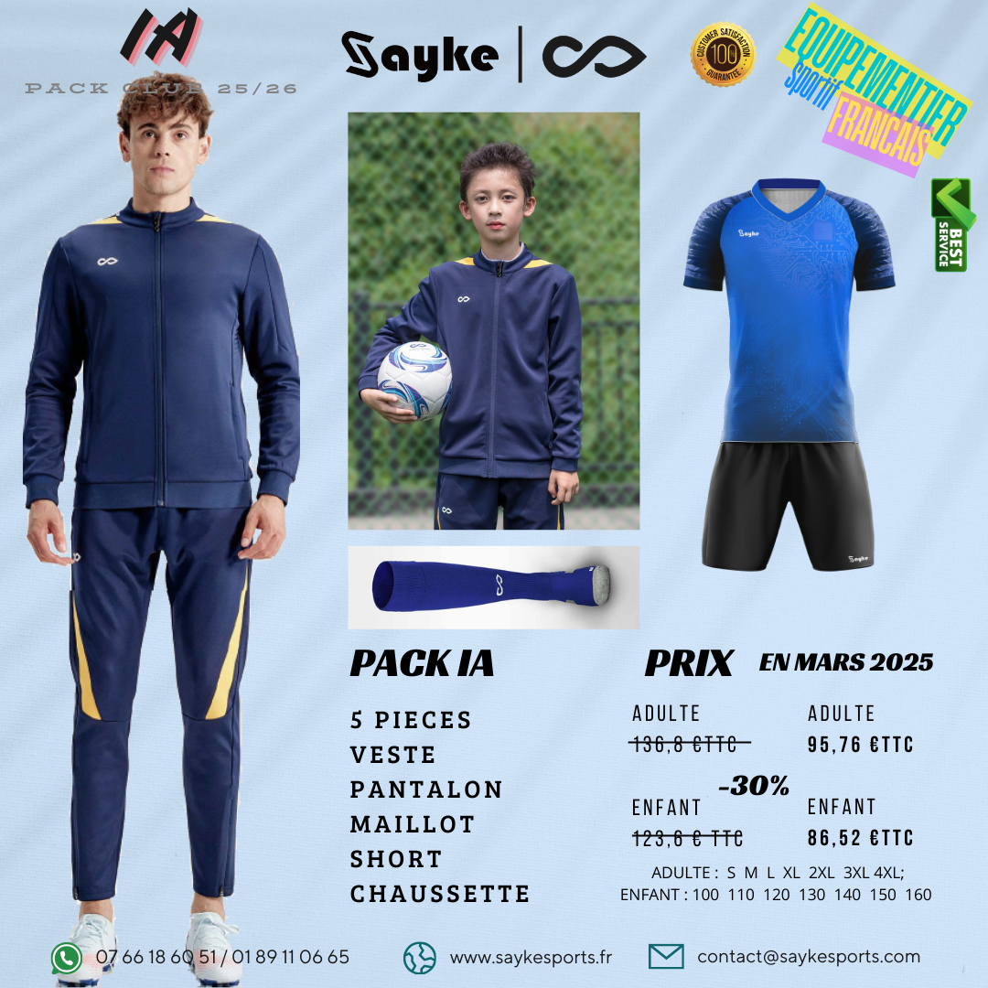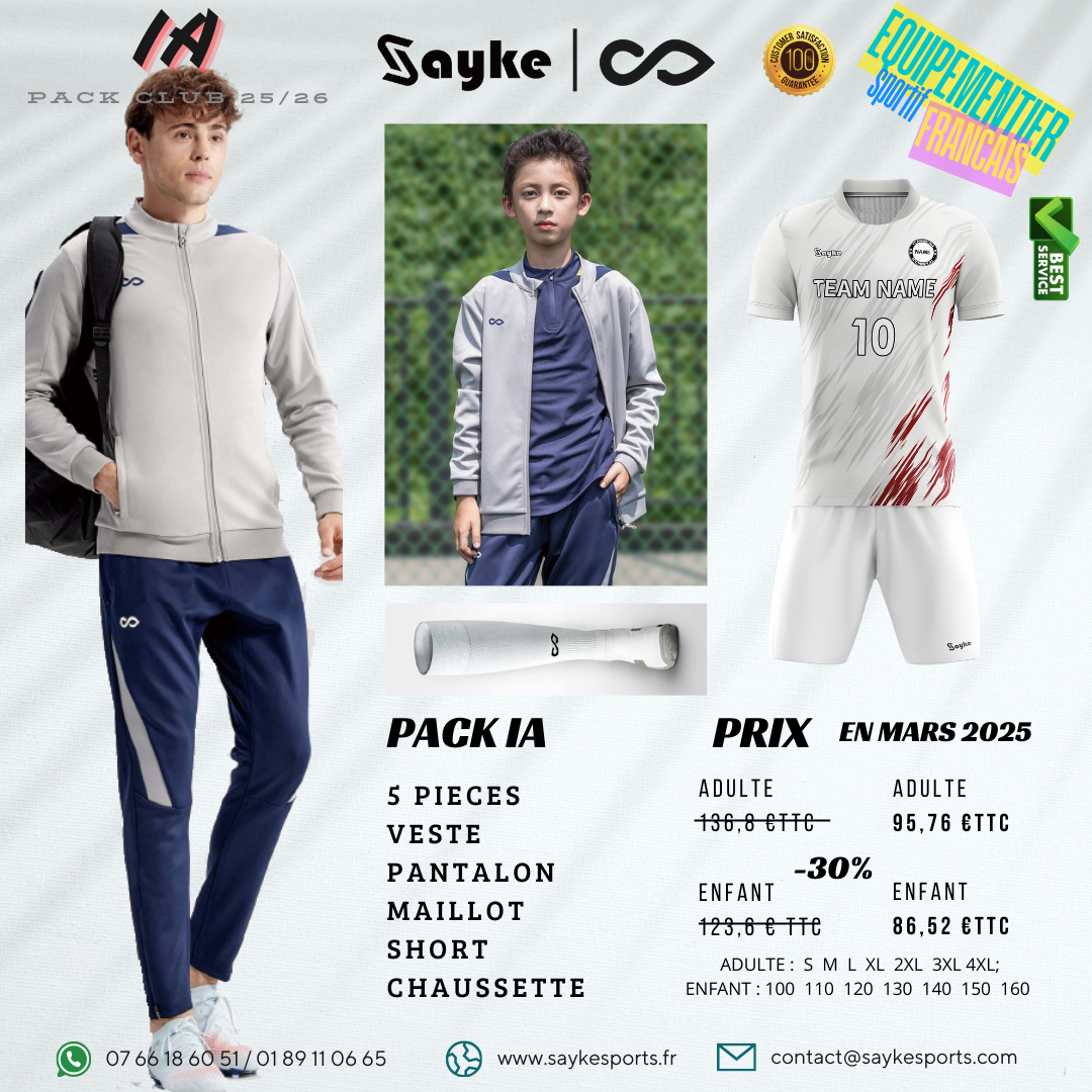 Choisissez des articles que vous souhaitez dans votre Pack , équipement complet et personnalisé pour vos joueurs, à un prix abordable.