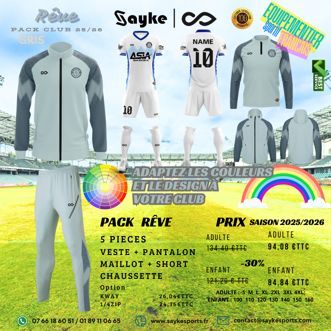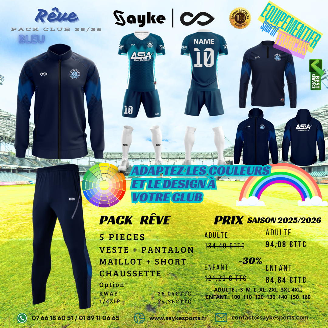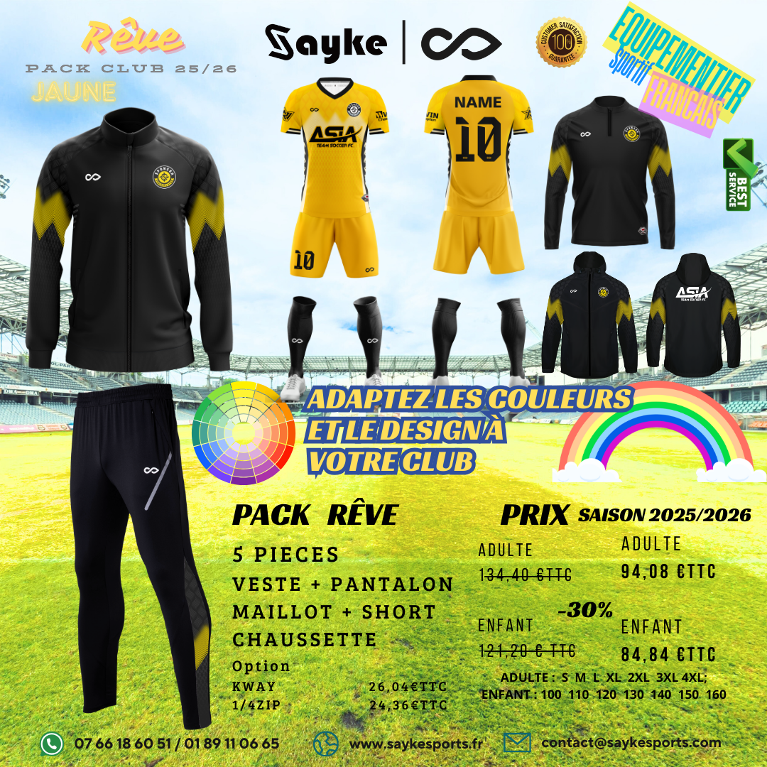 Choisissez des articles que vous souhaitez dans votre Pack , équipement complet et personnalisé pour vos joueurs, à un prix abordable.