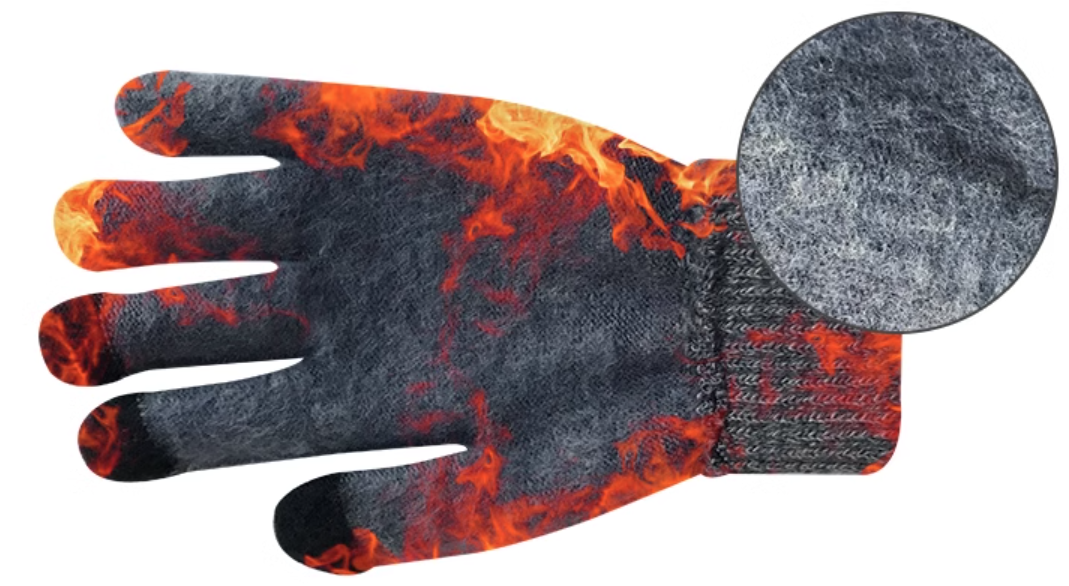 - Pouce et index tactiles, tissu principal acrylique et polyester.